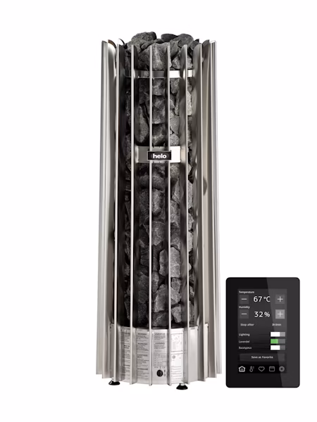 Rocher Elite -sähkökiuasta ohjataan Helo Elite Free ohjauspaneelin kanssa. Elite Free ohjauspaneeli tarjoaa reaaliaikaisia tietoja saunan tilasta, pilvipohjaisia toimintoja ja mahdollisuuden ohjelmoida aikataulun käyttäjän mukaan. Mukautettavien asetusten lisäksi Elite voidaan ohjelmoida yksilöllisesti oman aikataulusi mukaan.