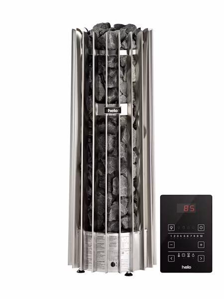 Rocher Pure-sähkökiukaat ovat varustettu Pure-ohjauskeskuksella. Pure-ohjauskeskus tarjoaa käyttäjille mahdollisuuden hallita saunakokemustaan kätevästi erilaisten edistyneiden ominaisuuksien avulla. Ohuen mustan ohjaimen avulla voit helposti säätää valaistusta, lämpötilaa ja saunomisajan vain muutamalla napautuksella. Lisäksi voit asettaa saunan käynnistymään jopa 10 tuntia etukäteen, mikä tarkoittaa, että pääset nauttimaan miellyttävästä lämmöstä heti kotiin saavuttuasi.
