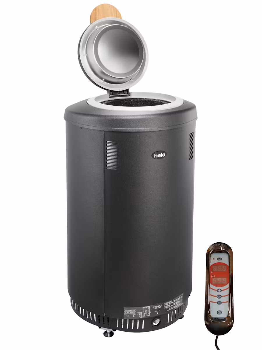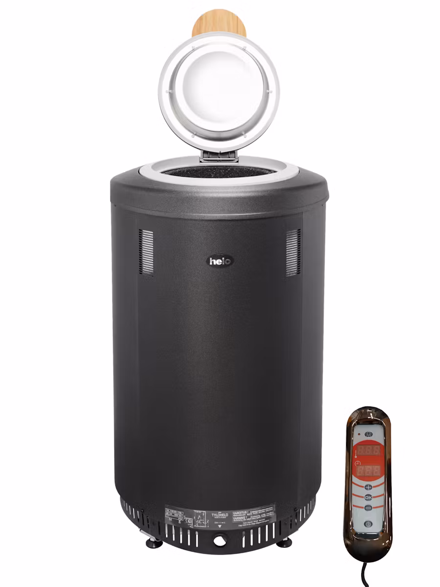 360° kääntyvää kantta et löydä muista kiukaista. Kansi on vaivaton avata ja löylyä voi heittää haluamastaan suunnasta. Erittäin hyvä eristys säilyttää lämmön tehokkaasti pelkän muhimistehon avulla, joten voit nauttia saunomisesta hetken mielijohteesta, ilman esilämmitystä.