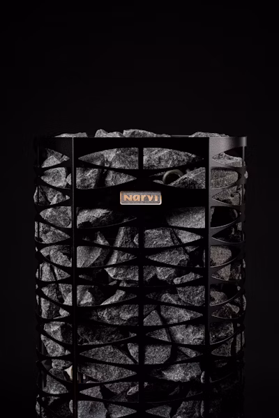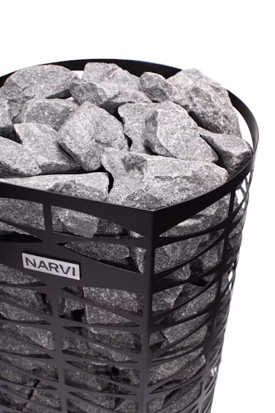 Kiviverkko tuo kivet näyttävästi esille. Elektroninen termostaatti pitää lämpötilan tasaisena. Vakiona erillinen ohjauspaneeli, jonka avulla kiuas on helppo laittaa päälle ja säätää lämpötila halutulle tasolle.