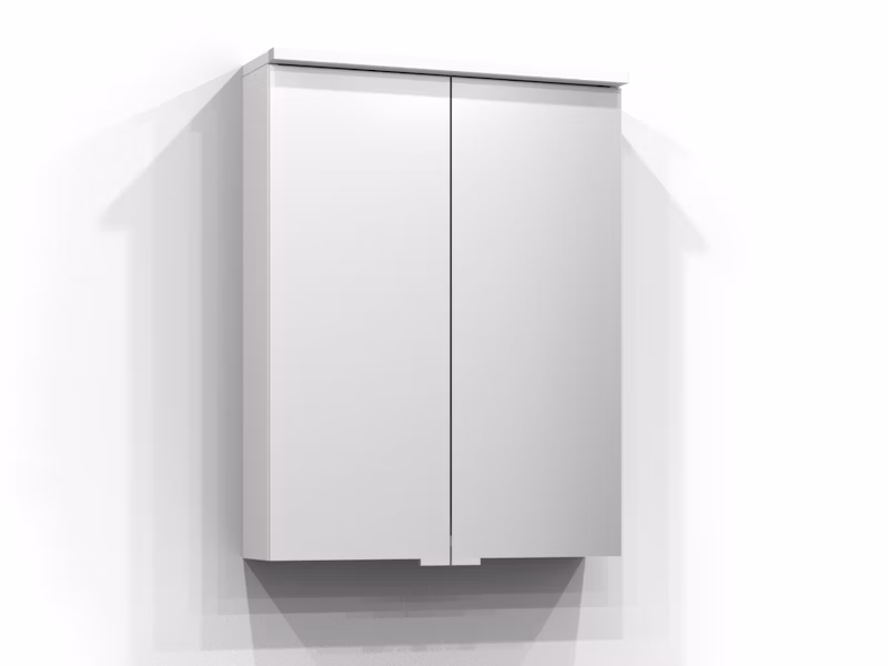 Tyylikäs Bloc 55 peilikaappi, joka on vain 12 cm syvä. Kaksi käytännöllistä liikuteltavaa lasihyllyä ja pistorasia kaapin yläreunassa. Sisältää energiatehokkaan LED-valon.