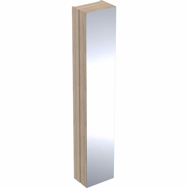 IDO Glow -sarjan korkealla peilikaapilla saa luotua kylpyhuoneeseen helposti lisää säilytystilaa. Peilikaappi sisältää käytännöllisen sisäpeilin sekä tasoksi taittuvan hyllyn. Peilikaappi aukeaa oikealle 180°. Kaapin valmistusmateriaali on kosteudenkestävä MDF-levy. Kaappi on vaalean tammen värinen.