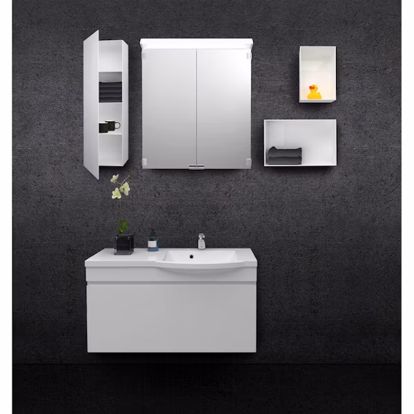 Polarian Lumena 550 VVS on yksinkertaisen tyylikäs ja toimiva vikavirtasuojattu peilikaappi valolla. Lumena 550 VVS -peilikaapin kiinteä LED-moduuli valaisee käytännöllisesti myös ylöspäin ja sen valoteho riittää valaisemaan koko kylpyhuoneen. Valaisinpeilikaapissa on kaksipuoleiset peiliovet ja sen sisällä on kaksiosainen pistorasia. Lumena 550 VVS -peilikaappi on materiaaliltaan nanokeraamisesti suojattua jauhemaalattua terästä. Kaapin asennus on helppoa ja nopeaa ja saranamekanismi on säädettävissä. Hiljaisemmat vetimet parantavat käyttömukavuutta.