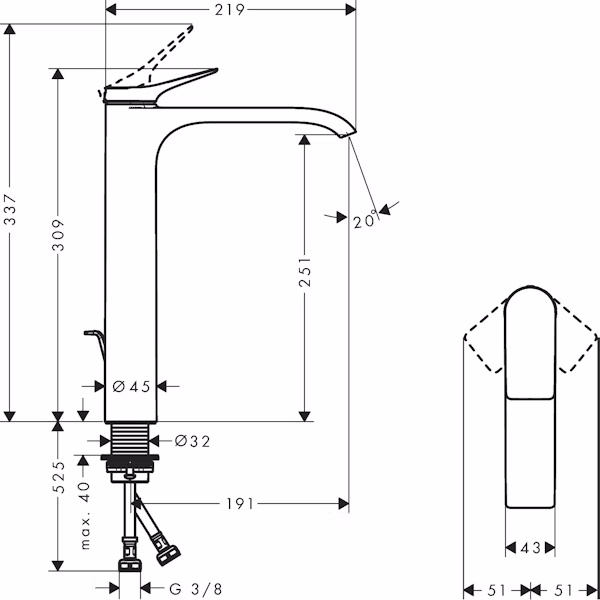 Vivenis 250 sisältää yksiote pesuallashanan ja pohjaventtiilin.