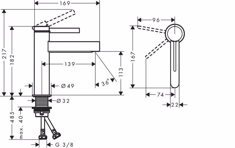 Korkeus tasosta hanan suuttimen alaosaan0 mm