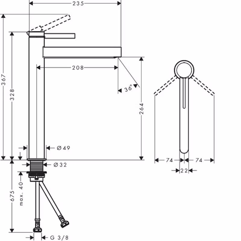 Korkeus tasosta hanan suuttimen alaosaan0 mm