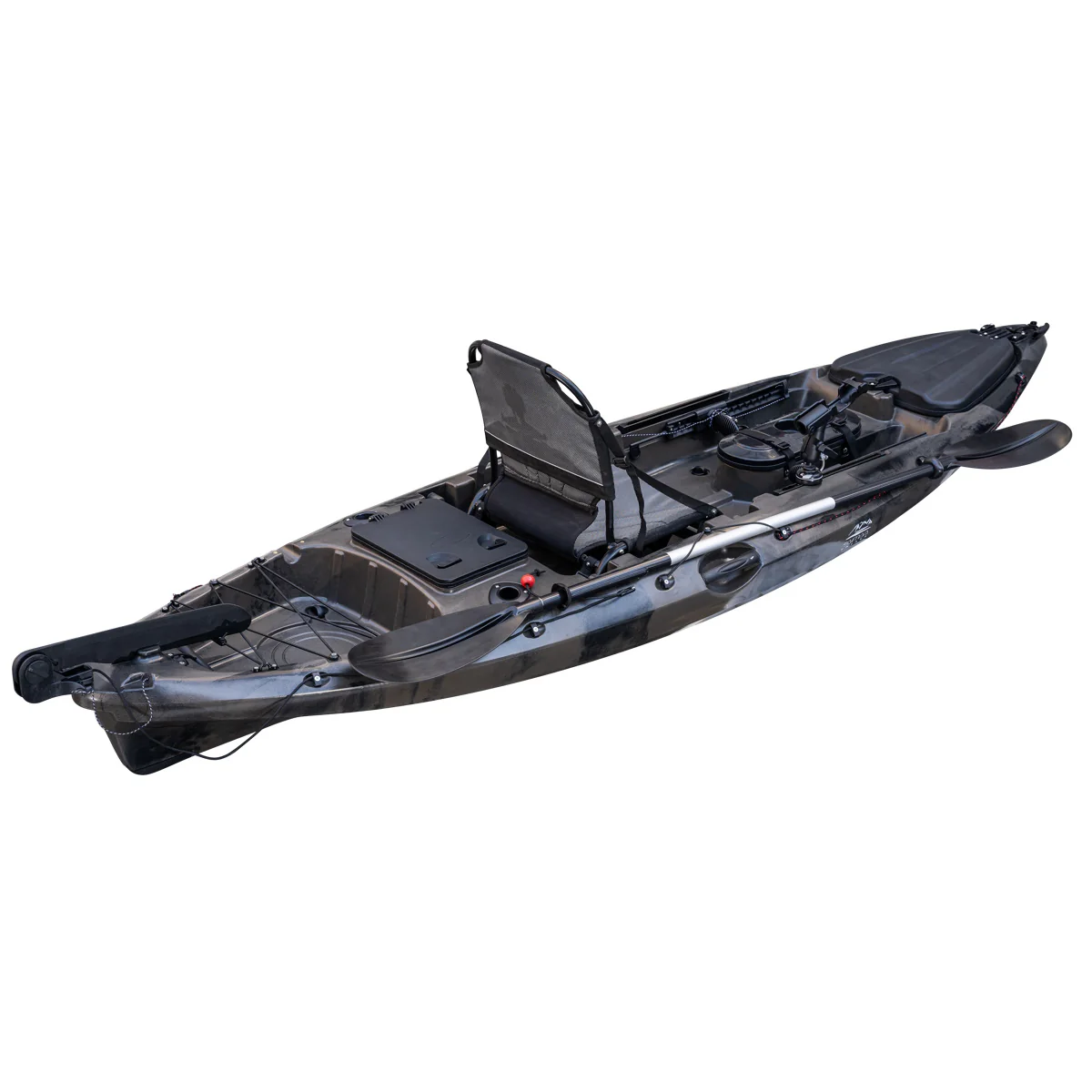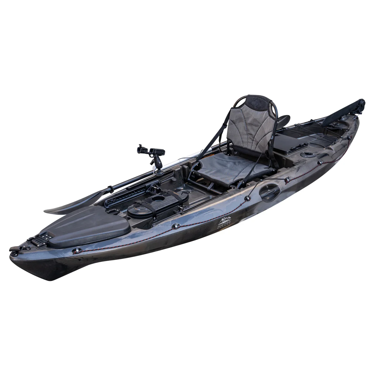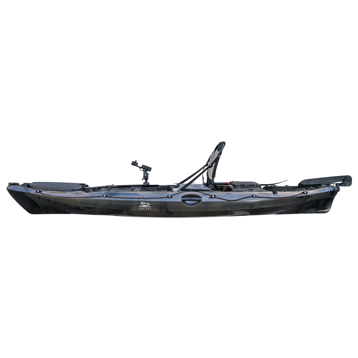 Kalastuskajakin runko on valmistettu vahvasta polyeteenistä, joka kestää pohjakosketukset ja mahdolliset osumat kiviin ja laituriin rannassa. Kajakin hyvät etu-, sivu- ja peräkahvat tekevät kanootin käsittelystä maalla helppoa.