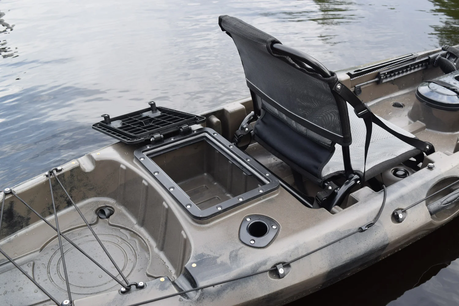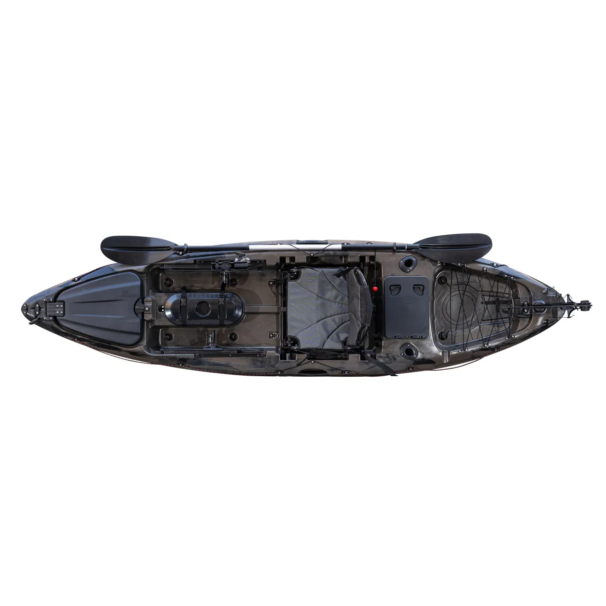 Jalkatuissa on isot säätövarat monenkokoisille henkilöille. 45cm pitkää nostettavaa peräsintä käännetään jalkatukien päällä olevilla ohjainpolkimilla. Matalassa vedessä kalasteltaessa peräsin on helppo nostaa ylös vetonarulla. Kajakin sivussa on apajalle saavuttaessa näppärä teline melalle, joten tilaa jää kalastamiseen.