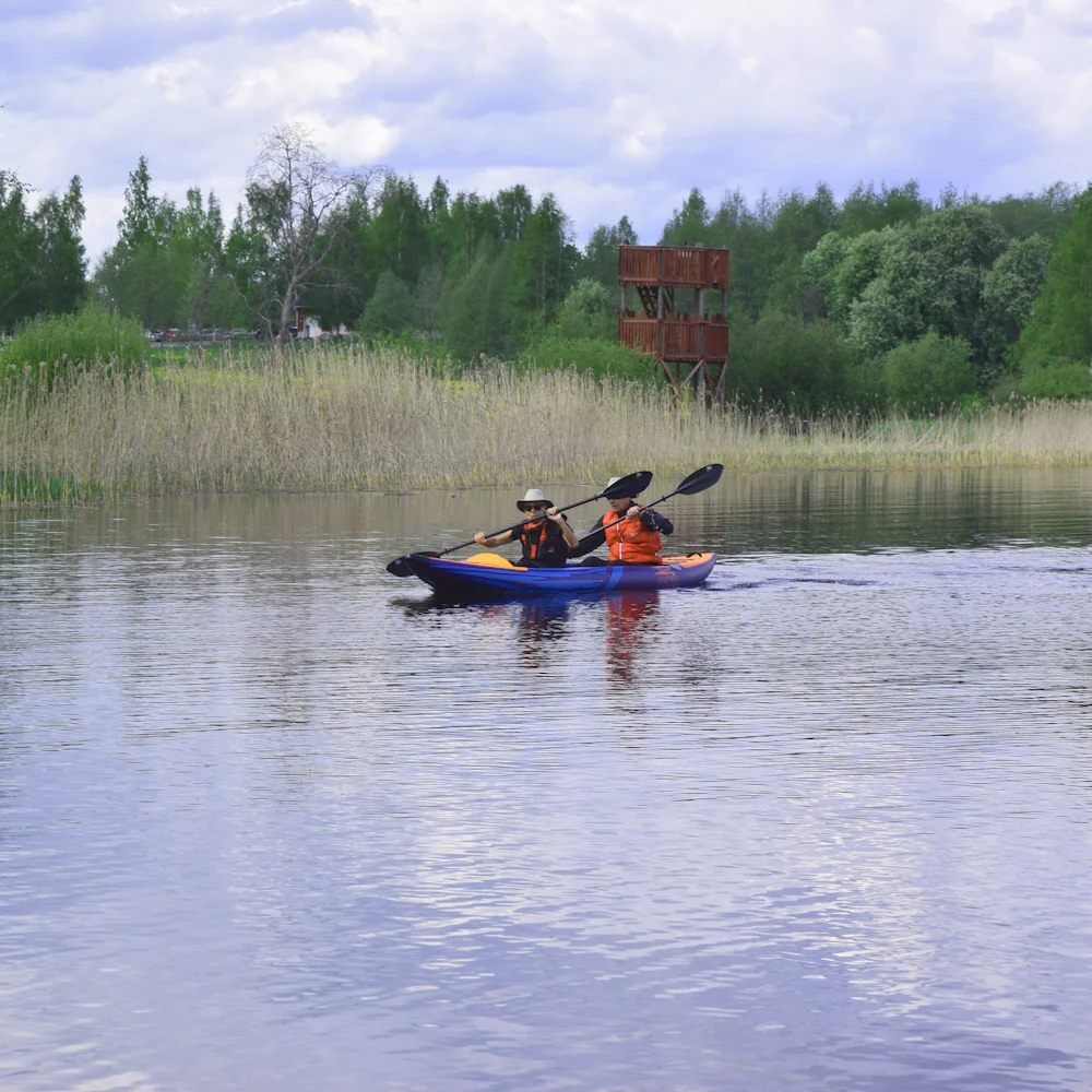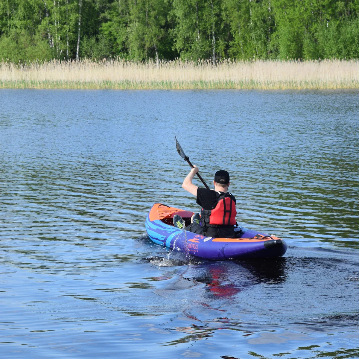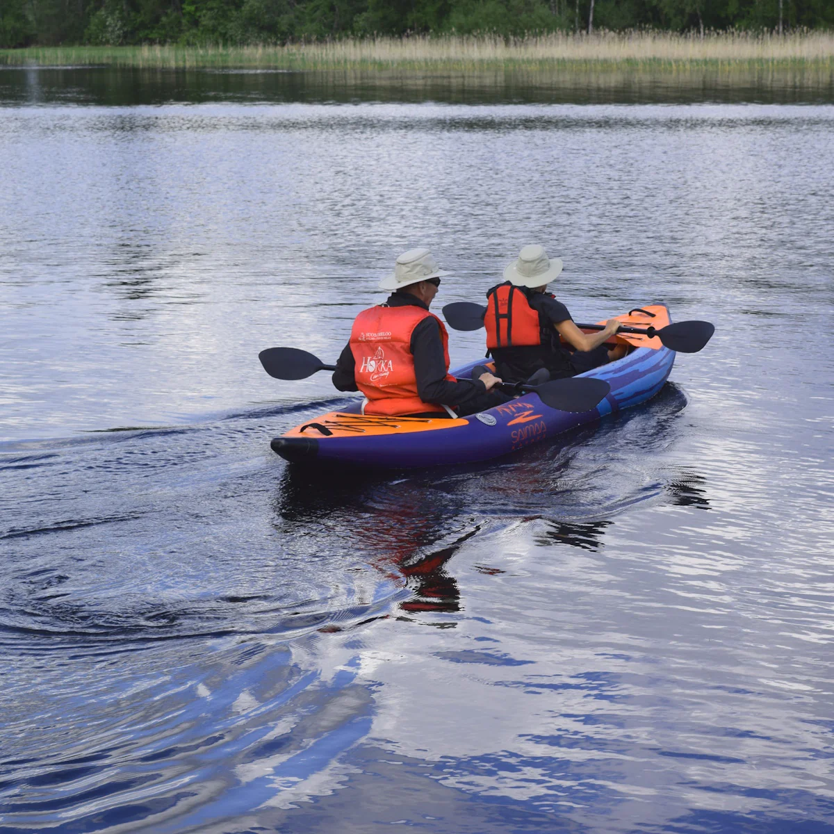 Saimaa Kayaksin ilmatäytteinen Adventure 2 retkikajakki kahdelle on ilmatäytteisten kajakkien suosituin monikäyttöisyytensä vuoksi. Kajakissa on hyvä kantavuus (270kg) ja se sopii yleis- ja retkikajakiksi koko perheelle vakautensa, helppokäyttöisyytensä ja turvallisuutensa vuoksi. Yksin meloessa istuimen voi siirtää keskelle, jolloin kajakkia on helppo meloa ja tavaratila lisääntyy huomattavasti. Täydellinen paketti kaikilla varusteilla valmiina vesille!