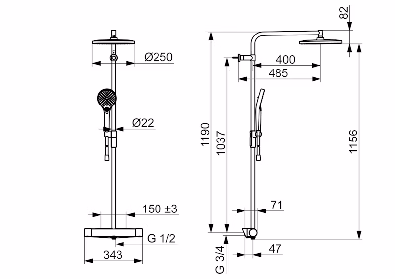 Keskiöetäisyys150 mm