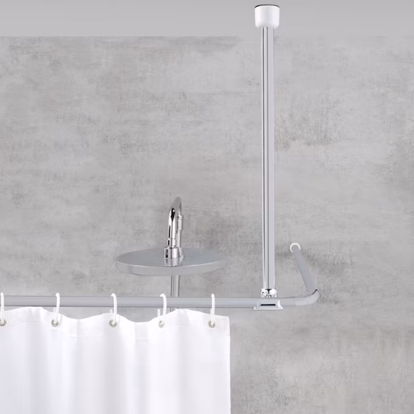 Tue kulmasuihkuverhotanko kattoon kiinni kätevällä kattotuella. Kattotuen pituus on 57 cm. Tanko kiinnitetään kattoon ruuveilla. Paketissa on ruuvit ja tulpat mukana. Suihkuverhotanko on valmistettu alumiinista ja se on kromin värinen.