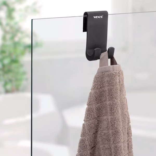 Suihkuseinään ripustettava pyyhekoukku on kätevä tapa hankkia lisäsäilytystilaa kylpyhuoneeseen. Sen asentamiseen ei tarvita liimaa, tarroja tai työkaluja. Musta pyyhekoukku ripustetaan yksinkertaisesti suihkuseinän päälle, jolloin toisella puolella suihkuseinää on käytettävissä paikka esimerkiksi pyyhkeille ja pesusienille.