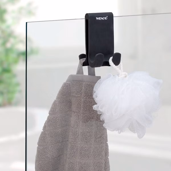 Suihkuseinään ripustettava tuplakoukku on kätevä tapa hankkia lisäsäilytystilaa kylpyhuoneeseen. Sen asentamiseen ei tarvita liimaa, tarroja tai työkaluja. Musta tuplakoukku ripustetaan yksinkertaisesti suihkuseinän päälle, jolloin molemmin puolin suihkuseinää on käytettävissä paikka esimerkiksi pyyhkeille ja pesusienille.