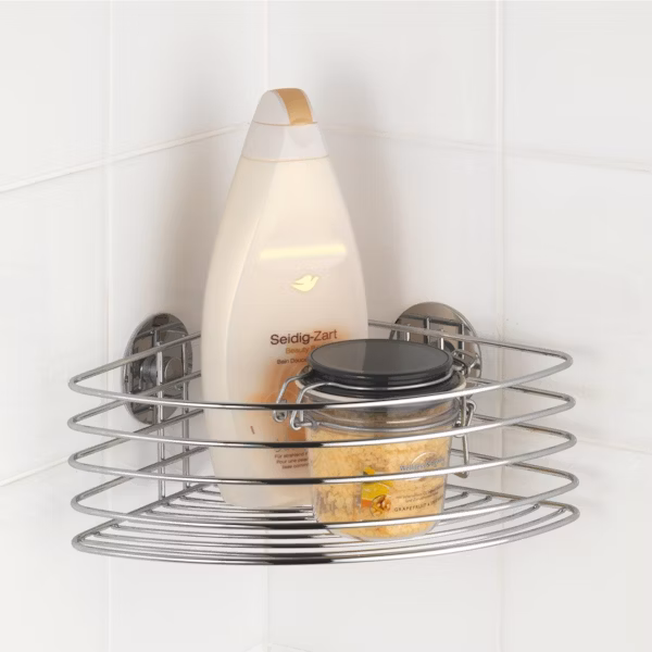Wenkon krominen suihkukulmahylly on tyylikäs vaihtoehto perinteiselle pitkänmalliselle suihkukulmahyllylle. Korimallin ansiosta saippuajämät eivät sotke hyllyä, vaan saippuavedet huuhtoutuvat alas lattialle. Kromista valmistettu tyylikäs kori kiinnitetään seinään fiksulla TurboLoc-kiinnityksellä. TurboLocin asentaminen on helppoa ja nopeaa eikä siitä jää jälkiä myöskään pois otettaessa.