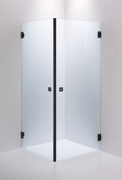 Suihkuseinä ARC 12, Kirkas, mattamusta, ulkomitat = 900×900 mm, korkeus = 2000 mm, neliömäinen reikävedin, mattamusta.