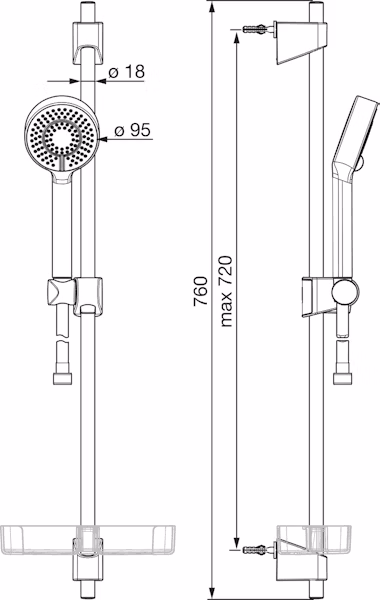 Suihkutangon pituus720 mm