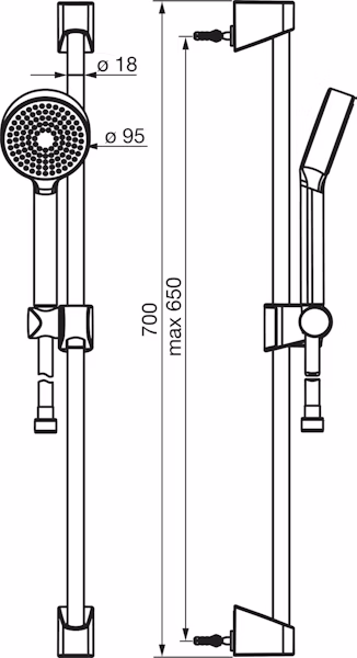 • suihkun osat: käsisuihku, suihkutanko, säädettävä suihkun kannatin, suihkuletku (1750 mm), Eko-virtaustoiminto