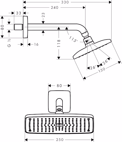 · suihkun koko: 250 x 150 mm