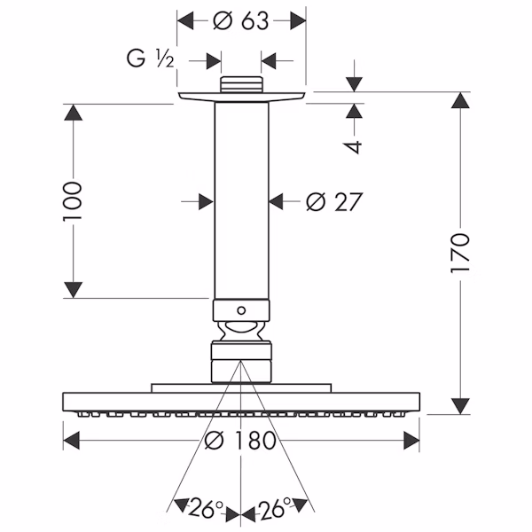 Suihkuvarren/putken pituus0 mm