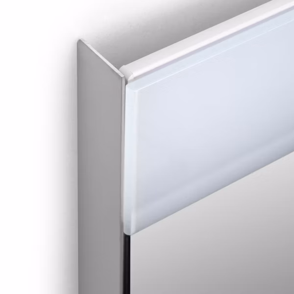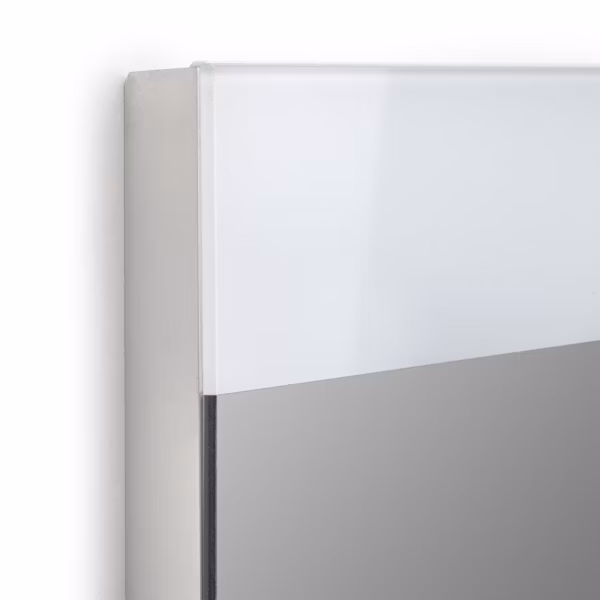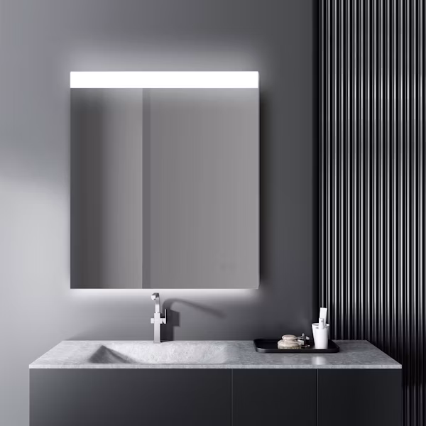 Twin -valopeili integroiduilla led-valoilla. Led-valopaneeli peilin yläreunassa valaisee eteenpäin ja alareunassa kulkeva led-nauha, valaisee alaspäin. Hyvä valaisuteho kuitenkin häikäisemättä. 4 mm peililasissa on korroosionesto, joka suojaa lasia hapettumiselta. Höyrystymisenesto pitää peililasin kirkkaana kuumasta suihkusta huolimatta. Led-valoa ja höyrystymisenestoa ohjataan kahdesta erillisestä napista.