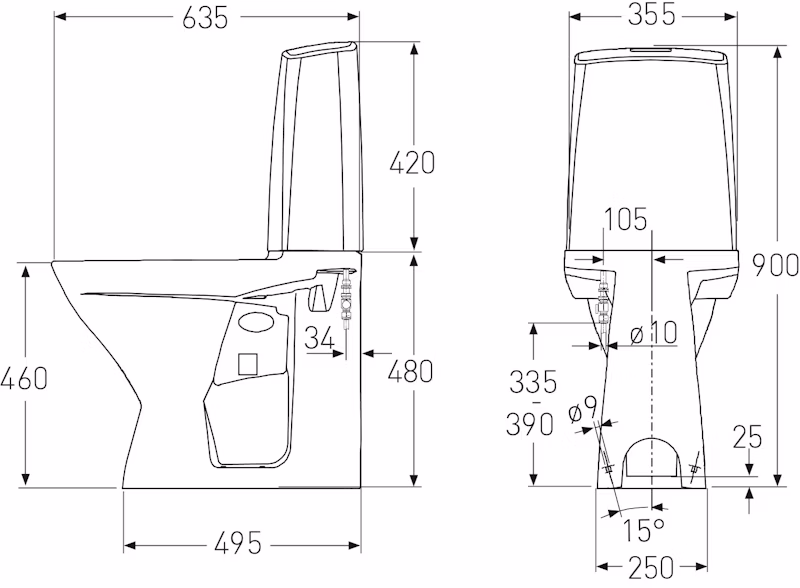 WC-istuimen kiinnittimen keskietäisyys155 mm