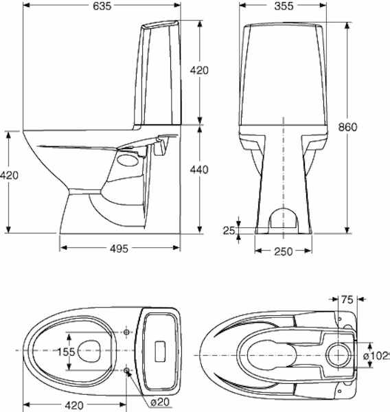 - syvyys: 635 mm