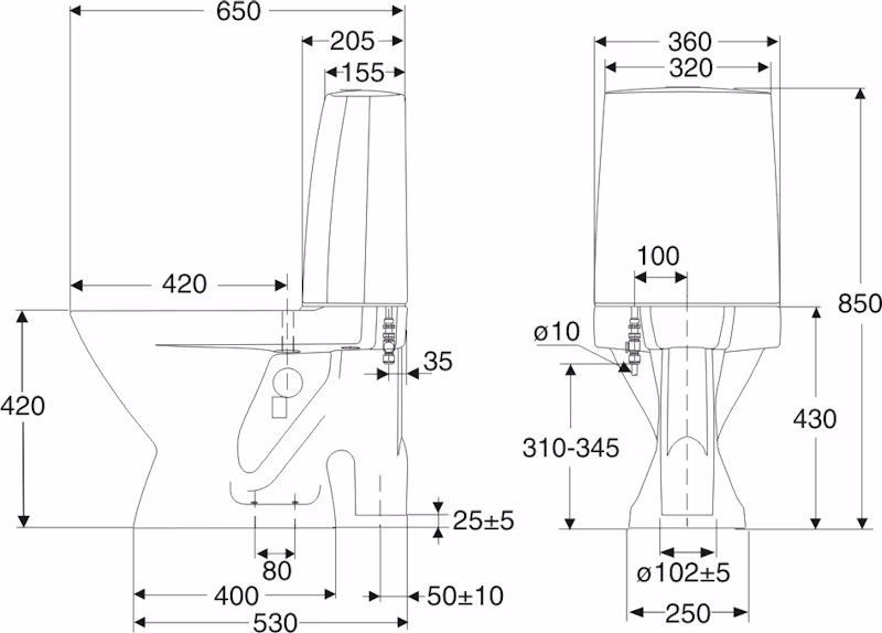 WC-istuimen kiinnittimen keskietäisyys155 mm
