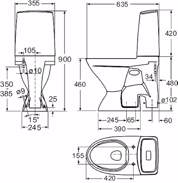 WC-istuimen kiinnittimen keskietäisyys155 mm