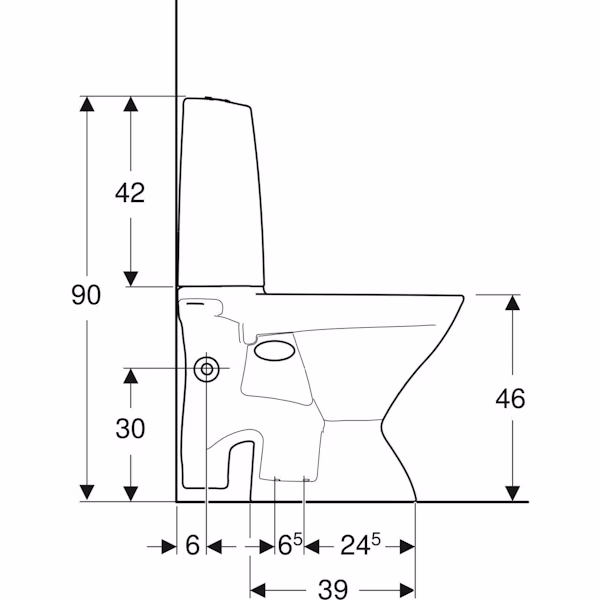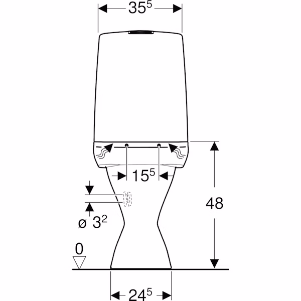 IDO Glow 67 korkea lattia-wc edestäpäin katsottuna vasemmanpuoleisella poistoputkiliitännällä